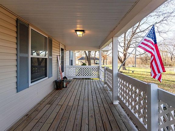 A covered front porch welcomes you to this spacious home with a vintage farmhouse vibe! Everything you need is on one level here, even the big laundry room. Huge kitchen with loads of cabinets & counter space, eating bar, bay window & space for a big table. The primary bedroom is separate from the other bedrooms & has a hollywood bath, walk in closet and a bonus closet. Newly remodeled jack n jill bathroom between secondary bedrooms. New A/C unit, newer roof, carpet & more. Unfinished basement with walkup door to the backyard offers tons of storage and space to expand. Rare half acre lot in town with detached garage, big deck, trees & a fenced yard with space for pets, play & gardening. The grocery store, gas station, bank & post office are just around the corner. Zero down USDA loan eligible if you qualify. Be in your new home for the holidays!