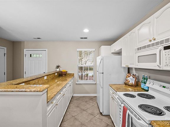 This 3-bed, 2 1/2-bath townhome offers a perfect blend of comfort, style & convenience. As you step inside, you'll be impressed by the inviting & open layout. The spacious kitchen has loads of counter space allowing for easy meal prep & entertaining. Dining area looks onto airy and bright living room with vaulted ceilings. Out back is an oversized patio w/ privacy fencing & views beyond of the wooded Ballantyne District Park. The primary bedroom located on the main floor has walk-in closet & bathroom w/dual-sinks & shower. Upstairs has loft space that could easily be an office, playroom, or den plus 2 bedrooms & a full bathroom w/ shower-tub combo.Interior has been freshly painted (along w/having popcorn ceilings scraped) plus brand new: window blinds, carpet, light fixtures, & ceiling fans (there are 5!) Attached 1-car garage provides additional storage w/overhead shelving. Convenient location just moments away from retail & dining of Stonecrest & Blakeney and easy access to I-485.