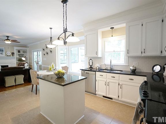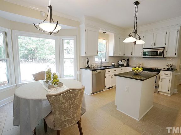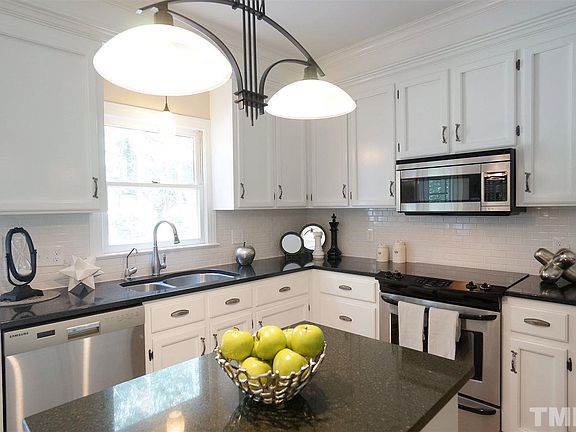 Beautiful 4 BR home set on lush .97 acre lot in great N. Raleigh location. This beautiful home has a bright & open floor plan w/spacious rooms & gorgeous natural lighting throughout. Plantation shutters & hardwood floors on main. Tile floors in kitchen & bathrooms. Granite counter tops in Kitchen & Master bath. SS appliances. Fireplace framed by built in bookshelves. Glass porch with tile floor & sky lights. Large bonus room. 3rd floor room could opt as 5th BR/has WIC and full bath. 2 car garage.