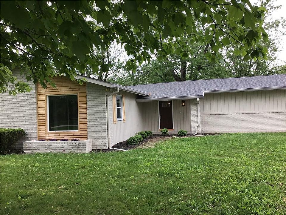 A rare find, Ranch in Carmel! Completely redone 3 bedroom, 2 full baths sits on a corner lot, just over a half acre! Open floor plan is inviting, functional and easy to live in. Stylish Kitchen boasts plenty of storage space, beautiful quartz countertops, backsplash, SS appliances and large center island! Breakfast bar, Sep Dining area, all open to large GR w/ wood-burning fireplace. Down the hall, you will find 3 bedrooms, full bath & separate laundry area. Mstr offers ensuite bthrm w/ double vanity sinks. Sliding door from GR & Kit lead to bckyrd patio surrounded by mature trees. New HVAC, windows, newer roof and gutters. 2-car ovrszed, attch garage. Great, quiet neighborhood, minutes from Monon Cntr, Monon Trail & Downtown Carmel.