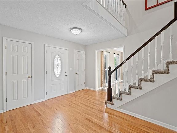 Welcome to this stunning home on a spacious corner lot, perfectly positioned against peaceful neighborhood trails for the ideal blend of privacy and convenience. Inside, the bright and airy main floor greets you with an open foyer and a family room featuring dramatic floor-to-ceiling windows that bathe the space in natural light. The family room flows effortlessly into the formal dining area—perfect for gatherings and entertaining. At the heart of the home is a beautifully appointed kitchen with a cozy breakfast nook, opening to a warm and inviting hearth room. Here, you’ll find a charming fireplace and custom built-ins that create a welcoming space for everyday living. A convenient half bath and laundry room complete the main floor.