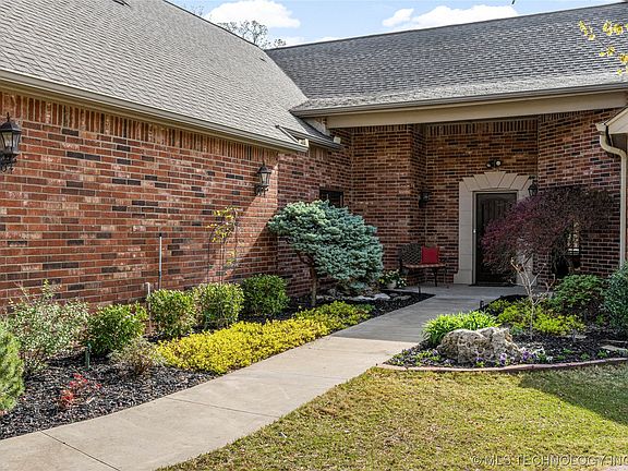 One-owner home in the sought-after Graystone Subdivision! Bixby School District. Timeless architecturally designed with attention to the smallest details throughout! Incredible full-brick home with finished walkout lower level. 5016 total square footage: 3087sf on the main living level and 1929sf on the lower level. The lower level walkout includes a large bedroom with a walk-in closet and a full bath. Also on the lower level is a spacious living area, including an area designed and plumbed for a future kitchen, a storage room, and a walk-in furnace and HWT room. The basement could easily be made into full living quarters for extended family living or a mother-in-law suite. A wall of windows overlooks the covered patio backyard. The backyard was designed for a future pool! The main living level has arches and extensive trim and crown molding. Beautiful woodwork, hardwoods, wood doors, and wood window casing throughout. Large master bedroom with walk-in closet and an ensuite with floor-to-ceiling tiled walk-in shower. Incredible kitchen with rich cabinetry woodwork and a hidden pantry. The kitchen, breakfast nook, and living area overlook the backyard. Large deck off of the living area with stairs down to the covered extended patio. Oversized garage with 18x10 wide doors to accommodate 3 cars. Lots of storage cabinets!