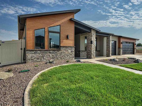 In a word, "wow." Expect to hear it over and over again. There's simply no better way to describe Dahl Built Homes latest ranch level home. This Explosive design is overflowing with exciting extras including FULLY FENCED YARD and FRONT LANDSCAPING! Blending stone with stucco and siding, this attractive exterior features a covered porch, stone pillars, alluring angles, decorative windows, and a metal roof. Inside every room and living space was given very careful thought and functions extremely well for perfect livability. The secondary bedrooms are provided with a Jack and Jill bathroom and the master suite is arranged for plenty of privacy from the secondary bedrooms. If you're looking for non-traditional and unbelievable home your search is over. And what a "winner" you've found. Welcome to your new home in Aspen Village!
