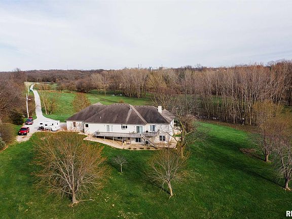This property is pretty special. Ranch home that's nestled down your own long private lane on 40 acres of pleasure. 13 min to downtown Springfield. This home is a large 4 bedroom, 4 full bath, w/ walkout lower level. All bedrooms have their own walk-in closets, large eat-in kitchen with massive pantry, large deck, the master bedroom has sliding door access. The huge garage is heated, 2 separate lower level entrances, would be perfect for a business, or 2nd living area with complete full kitchen, with large bedroom, family room, Rec room, office, and lots of storage. Updated landscaping. Pastures are fenced with 3 strand high tensile electric fencing. Property has all been made usable. Land is ideal for custom hay, CREP, CRP, horses, cattle, hunting, trail riding along the creek that runs the south property border. Whole house vacuum, appliances stay, Radon mitigation system in place, large main level laundry room. Many home updates as well. Drone property video available upon request.