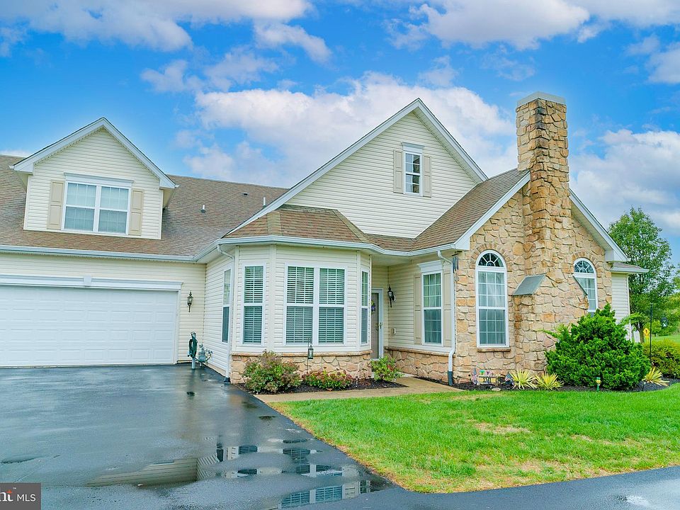 Don’t miss out on this wonderful 2 bedroom / 2.5 bathroom corner carriage house in the very popular “The Vineyards” 55+ community in Upper Hanover Twp. As you drive through the gated entrance, you will appreciate the wonderful setting this community offers, with walking paths, 3 hole chip & putt, tot lot for visitors, clubhouse w/ fitness room, game room, library & kitchen along with plenty of open space and views of the natural scenery. As you enter this home, you will appreciate the bright kitchen with white cabinets, tile backsplash, recessed lighting, hardwood floors and wonderful breakfast area w/ lots of natural light. The kitchen flows into the spacious living room and dining area complete with vaulted ceilings, recessed lights, gas fireplace and plenty of room for the big screen TV. The dining area offers plenty of room for the large gatherings etc. Just off the living room is a terrific home office / den area with entrance to the lovely paver patio. The main level also offers a half bath, laundry room and the primary bedroom suite. The bedroom offers a tray ceiling, large sitting area, walk in closet and luxury bathroom complete w/ double sinks and oversized shower. The upper level includes a 2nd bedroom w/ full bathroom and walk in closet. This home is conveniently located just a short commute from nearby grocery shopping, dining and easy access to Route 63 & 663.
