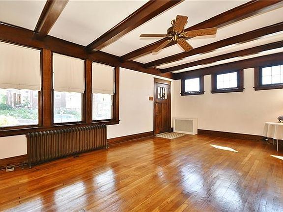 Welcome to the Dormont beauty, large front porch with railing, brick planters and a wood ceiling. Living rm has gas fireplace with original ceramic tile,original wood beams,built ins with glass door, hardwood floors. Dining room gas fireplace original ceramic mantel,built ins with glass doors, bay window original wood beams,swing butler door to large kitchen, new stainless steel appliances,lots of cabinets, door to new wood deck with steps. Master with bay window gas fireplace,ceiling fan, adjoining room can be 4th bedroom, office, sun room or nursery, walk in closet,with wall of windows.Bedrooms 2 & 3 ceiling fans. one has bay window,other large picture window. Up stairs bath has original iron claw foot tub,ceiling fan. Large walk up attic,can be play room,storage under eaves. Large unfinished basement with built in storage,double laundry sink, a nice full bath with a ceiling heater. 2 car detached garage with sliding doors. A must see!