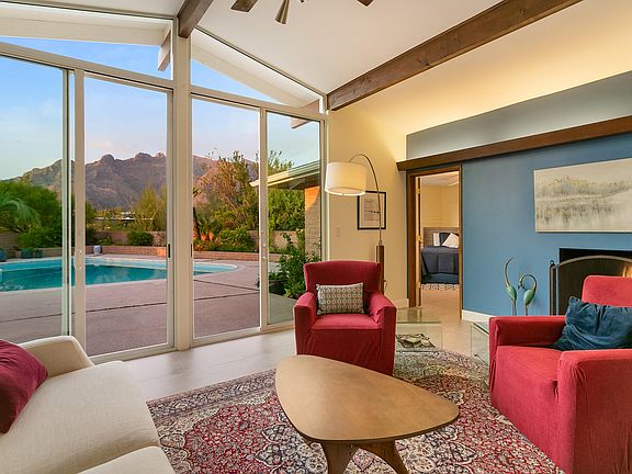 The perfect home for today's world. Main house w/ open concept & floor to ceiling windows that overlook the pool & enclosed backyard to the Catalina Mountains. Large master & multi-purpose den/bedroom both w/ en-suite bathrooms. Plus, enjoy the options afforded by two attached casita's with renovated bathrooms for a parent or boomerang children that you want close but still independent and/or working from home. These casitas give you the chance to work separately, support your loved ones, AND have space for friends & family to visit. Commute across a screen enclosed Arizona room w/ plenty of space for entertaining. More than $100k in updates made in the last year such as, flooring, baths, plumbing & a new roof. Great location close to shops, hiking trails & easy access to I-10 & the city New Sewer line w/ 30 yr warranty, new HVAC in 1 guest home with 10 year warranty, new closet doors in master, re-screened huge breezeway AZ room with sitting for 30 people & on and on...This is truly a one of kind home - so hurry over. A must see!