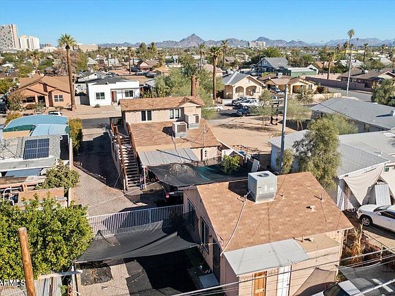 AMAZING OPPORTUNITY WITH UPSIDE RENT POTENTIAL! This multi-family residence with three separate living quarters offers fantastic rental opportunities in the heart of the Garfield Historic District! Living areas include 3 Bed/2 bath newly carpeted main house, upstairs studio with a separate entrance, new shower and tile, and great city views, plus, a 2 Bed/1 bath Guest house in back. Both the main house and back building have inside laundry hook ups. All this is situated on a drive thru lot in a great location, near downtown Phoenix, sports & entertainment, universities, light rail, and more!