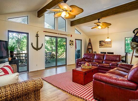 Enjoy every minute at Lake Tillery in this home with lots of out door living area. Sitting in a deep water cove with main channel views. Nice boat house and a grandfathered in ground boat house that would make a great hang out right on the water. Large windows allow for breath taking views from the living room. Updated and tastefully decorated 3 bed 2 bath on main level with room for all your friends and family. Finished walkout basement with full bath adds to the living and entertaining space.