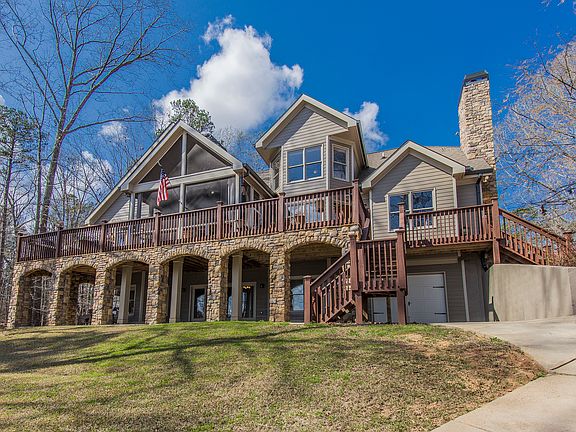 Beautiful, turnkey custom furnished home on Lake Oconee sold with all furnishings included in desired Morgan County! Three story home with spectacular lake views. Home is located on deep water, close proximity to the marina. Enjoy boating, jet skiing, and tubing right off the max dock with new seawall, resurfaced dock and deck, electric boat lift, and irrigation system fed from lake. Property has a iron fence, great safety addition for kids and pets. Interior features include refinished hardwood floors, granite countertops, custom cabinets, updated paint, 3 fireplaces, upgraded appliances, and 3 H&A systems. Plenty of room to spread out with a finished terrace level including a teen/in-law suit, bar, workout room, and game room area. Located in desired school system of Morgan County and close to I-20 for easy access to Atlanta or Augusta!