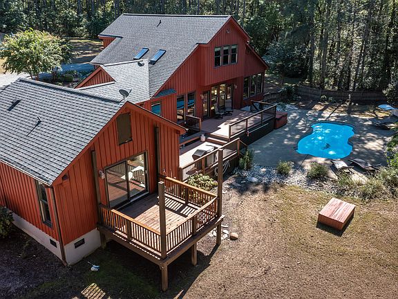 Come experience your own private retreat and you'll never want to leave. While this country setting is 4.45 acres, it is a short commute to Raleigh, Durham, RTP and RDU with easy highway access. This home has many updates and has been well cared for! When you enter the property through the long secluded driveway, you'll find a barn style home, a beautiful landscape, and plenty of open space for garden, play or pets. Enjoy summer days in your saltwater in-ground pool or evenings relaxing in the hot tub (all pool equipment conveys including the Dolphin robotic cleaner and pool cover). This property backs up to Army Corps of Engineer land next to Falls Lake, so no one can build behind you. No HOA with the closest neighbors being the occasional deer, heron, or eagle. This 4 bedroom home (only a 3 bedroom septic permit) has 3.5 baths, all the modern conveniences, and the architecture (great room with masonry fireplace/ chimney, numerous tall windows for nature views, newly refinished pine flooring in the main areas) that takes you to a place of peace and quiet. The first floor primary suite is spacious with a private deck to access delightful outdoor views. The front entrance has a covered porch where you can meet guests or simply observe the fish pond (containing Japanese Koi) while listening to the soothing ripple of the waterfall. The multiple large decks (with Trex flooring) offer plenty of entertaining space and views of the pool and nature. The guest bedroom on the first floor has it's own bathroom. 2 upstairs bedrooms are spacious, have large closets, and offer amazing views. Park by the side entrance or inside your oversized two car garage, which has a finished bonus room/ office above. This 500 sq ft of additional space is not included in the overall square footage as it is detached from the home and was finished by the prior owners without a permit. Walk to the nearby Cedar Creek Gallery! Whole house water softener and UV water filter included. Hot tub, kitchen refrigerator, washer, and dryer are included in the price of the home. Yard has just been aerated and seeded along with lime.