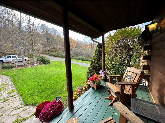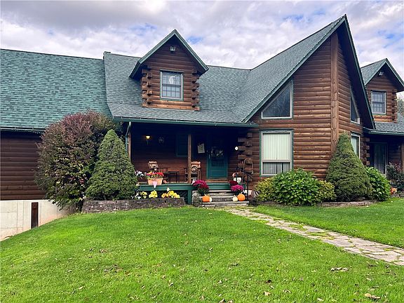 Beautiful 20 acre setting for this Beaver Mountain Log home. 2500 sqft of living space. Greeting you at the entry is a perfect rocking chair front porch, open beams in the living room, flowing open concept with dining room and kitchen, staircase with loft overlooking the main living room. 3 bedrooms 2.5 bathrooms with primary suite on the first level. Primary bedroom includes private deck, walk in closet, private bathroom with full shower and separate whirlpool tub. The great room with a woodburning stone-faced fireplace, built-in shelves, and sliders to a large back deck is a cozy and inviting space for gatherings. Radiant heat on first floor and basement. The full unfinished basement provides potential for additional living space or storage. The inclusion of a hot tub and a walk-out slider to the backyard adds to the recreational possibilities. The house is equipped with a generator hookup. The property's babbling creek, open fields, and wooded areas offer a diverse and picturesque landscape. The old trails throughout could be revived for various outdoor activities like hiking or ATV riding. Adjacent to NYC lands, close to snowmobile trails. Listing Agent must accompany.