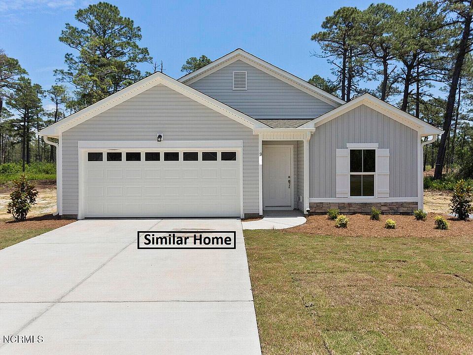 Presented for sale in the popular City of Boiling Spring Lakes is the Hickory floorplan, by premier builder Logan Homes. With 1583 sq ft and single level simplicity, this home offers something for everyone. A 2 car garage, granite counters in kitchen, quartz counters in bath, front yard irrigation and 8 x 10' patio all come standard. The home is situated on a generously sized lot. Boiling Spring Lakes is central to it all, 20 minutes to the beach, 15 minutes to Southport, 30 minutes to Wilmington. Take advantage of city amenities including Spring Lake Park with spring and fall concert series, swimming beach and great fishing. Try your hand at pickleball at Muse Park, or stop over at the community center which hosts the senior center, fitness room, and before and after school programs. Amenities are located throughout the city. Be sure to ask about our special interest rate financing when using our preferred lender and attorney! No HOA. Pictures of similar home.