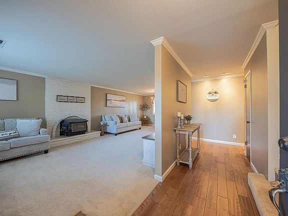 The home features a separate family room for your gatherings and entertainment. Flooring includes a mix of laminate, carpet, and vinyl/linoleum, offering comfort and style throughout the home. Cozy up next to the fireplace in the living area, and take advantage of the central forced air heating on cooler days.
