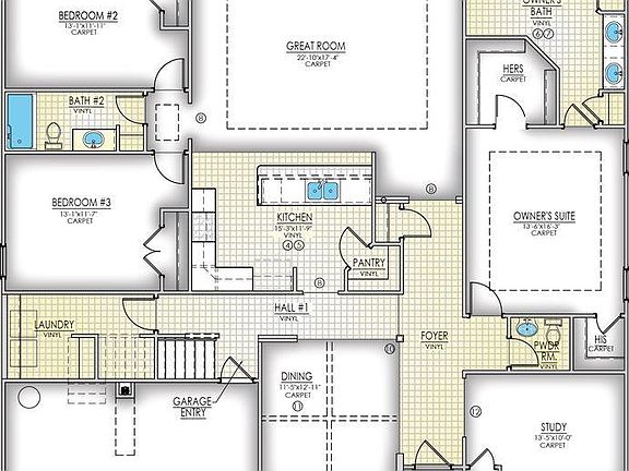 New construction by Great Southern Homes. Energy and cost efficient home features granite countertops, Tuxedo Touch home automation system, auto docking system w/ speakers, music port & USB charging ports. This home features Rinnai Tankless water heater with Whirlpool appliances (dishwasher, microwave & smooth top range)