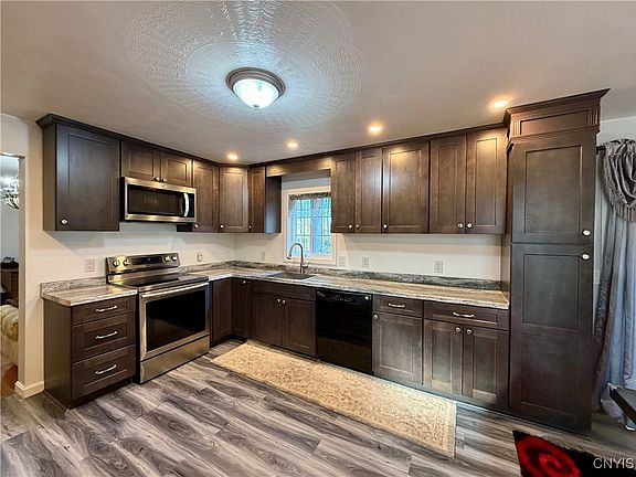 Welcome to this spacious and beautifully updated 4-bedroom colonial in North Utica, blending timeless charm with modern convenience. Your grand open foyer, illuminated by a large picture window, skylight, and chandelier, sets an inviting tone as you step inside. Discover gorgeous hardwood floors and a newly remodeled kitchen offering an ideal space for culinary creations and gatherings in the adjoining dining area. The cozy living room features a welcoming wood-burning fireplace, perfect for relaxing on cool evenings. Outside, a comfortable lounging patio provides a great space for outdoor enjoyment, while the attached 2-stall garage offers added convenience. With recent updates, including a new roof, windows, siding, furnace, hot water tank, and a stylish first- floor bathroom, this home is truly move-in ready. Ideally located near shopping, dining, and local amenities, this home is ready to make it your own!