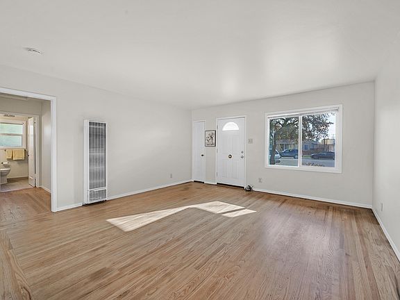 Gorgeous 3 bedroom, 1 remodeled and upgraded bathroom, plus large sun room, with 1 car garage plus side access. Dual-pane vinyl windows, wood floors, ceiling fans, gas stove, refrigerator, washer, dryer, storage shed included. Wow, huge backyard! On cul-de-sac with ample room for gardening, playground, possibly ADU, home expansion, pool. Near park, church, school. No HOA.