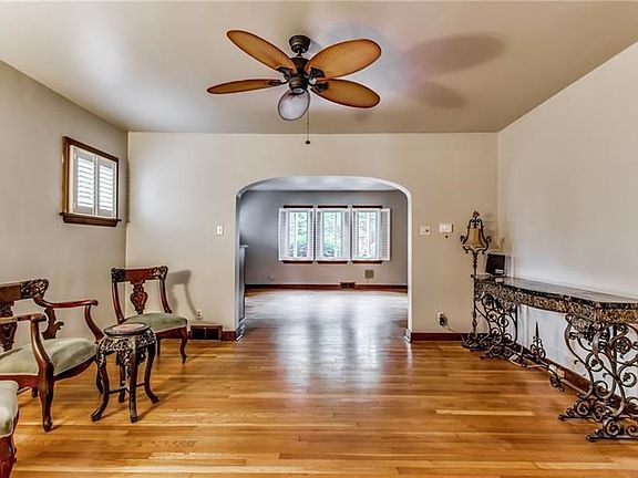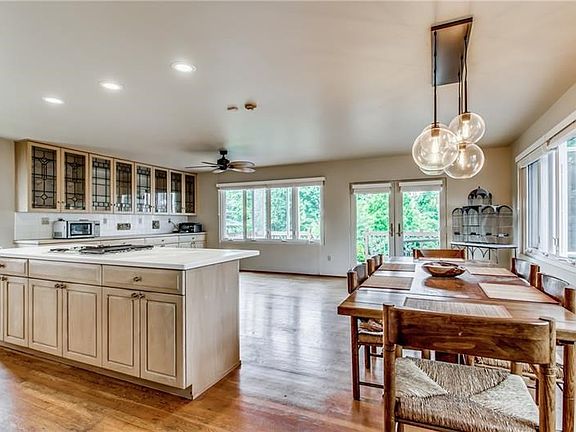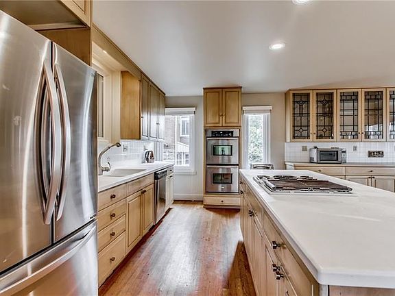 Gorgeous original details and charm in tact! 1st floor has spacious LR and formal DR with french doors that open to a Huge addition built for kitchen and additional DR area and 2 car integral garage below. Additional space could be designated as family room/office. Kitchen has white corian counters and neutral cabinets. Deck off of kit/DR area oversees a large fenced in back yard with privacy and abundant sunshine. 1st fl has full bath and pantry. 2nd fl has 3BRs and full bath, 3rd BR leads to captive finished attic room with built in shelves. Newer windows, light fixtures, steps/walkway and many other updates through out, Mature flowering trees and space to garden. Quick access to parkway and minutes to downtown. Nearby community pool, shopping.