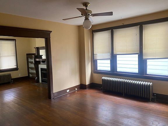 Spacious apartment with bonus basement storage unit. Original hardwood floors in the main areas and the bedrooms, and fresh paint updates throughout. Radiant gas heat is included for free in the rental price, as are the water, sewage, and garbage services. Tenant is only responsible for electric service. A shared front porch is included as well as a small private back yard, and there are basement laundry hookups available. Owner pays gas, trash, water & sewage. Tenant pays electric. Small additional water fee if tenant chooses to install their own washer/dryer in basement.