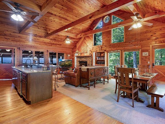 Welcome to Heaven's Step, where you'll find the Best View in the gracious My Mountain community! With layers of decks and windows to soak up the massive mountain views-This cabin is sure to steal your heart and bring calm and peace to your soul. From it's thoughtfully planned first floor with a gracious great room, kitchen and dining area with soaring high, rich pine wood ceilings- Two En Suite Bedrooms-Primary Suite with sun room and private deck. Split levels of entertaining areas lined with windows lead effortlessly to the lower terrace landing with additional bedroom and Game Room. Beautiful Polywood Deck furniture included along with many other items. You can watch the July 4th fireworks from your deck. Lets not forget that deck hovering in the fresh mountain air with a hot tub to soak your cares away. Come Live The Mountain Life!