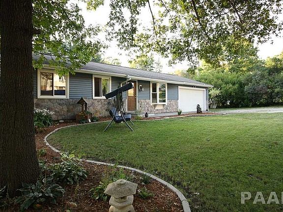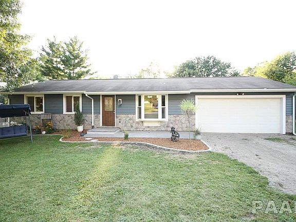 Germantown Hills School District affordable ranch home. Updated so nicely, a modern kitchen with new floors, counters and backsplash as well has stainless appliances with a large dining area which leads to the huge 23X14 deck in the back for nights of enjoyment with friends and family. The basement is finished with an office or 4th bedroom (no egress) with large walk-in closet, a big beautiful bathroom and laundry (new stackable washer and dryer included) and a roomy, comfortable family room for playing games or watching a movie. New siding and gutters and rural location close to Peoria.