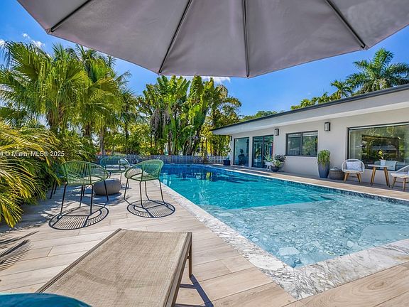 Epitome of Miami living. Luxurious villa on Miami Shores with access to Biscayne Bay. Enjoy your private 100ft dock for your own boat. Over 3000 soft feat and 4 beds and 3 baths. Each inch of this home has been curated to exude luxury. From beautiful floors, to built in wine coolers, wood tv installation, modern lighting on ceilings, dark luxurious kitchen, stone bathrooms of marble with different hues, extensive walk in closet, beautiful stone pool overlooking the canal, lush green landscape, and a separate in law quarters. Marble is the centerpiece of this unique home. Courtesy of Keller Williams Realty Miami Beach