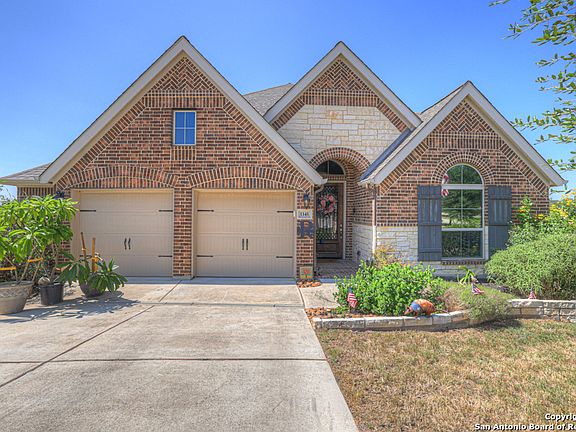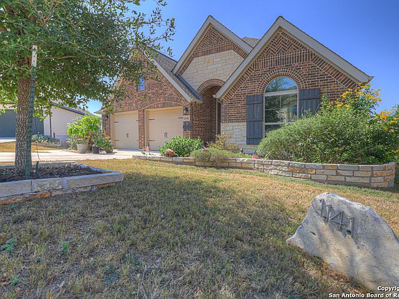 Open house! Saturday 09/14/2025 from 2:00 PM to 3:00 PM. Nestled in the heart of the highly sought-after Vintage Oaks community, this stunning 4-bedroom, 3-bathroom Perry Homes residence offers the perfect blend of luxury, privacy, and natural beauty. Built in 2018 and backed by a transferable 10-year builder warranty, the home sits on a beautifully landscaped 0.3-acre lot with scenic views and abundant native wildlife. Deer, birds, and other Hill Country animals regularly roam the area, creating a peaceful, nature-filled backdrop to your daily life. Step inside to discover a thoughtfully designed layout with an open-concept living area, dedicated office with double glass doors, and a spacious 3-car garage. The island kitchen is a chef's dream, featuring a gas cooktop, granite countertops, double built-in ovens, microwave, walk-in pantry, and abundant cabinetry. The home is filled with windows that frame greenbelt views, while smart upgrades such as gutters, and solar panels provide efficiency and sustainability. The primary suite offers a spa-like retreat with a garden tub, separate vanities, and an oversized walk-in shower. Additional highlights include raised planting beds, an open floor plan ideal for entertaining, and custom touches throughout. Step outside to your private oasis: a large backyard backing to the greenbelt, a custom deck surrounding the in-ground pool with an oversized Baja shelf, a solar pool heater, and a covered patio enhanced with a ceiling fan and custom lighting. Whether hosting gatherings or enjoying quiet evenings under the Hill Country sky, this outdoor retreat is designed for both relaxation and entertainment. As a resident of Vintage Oaks, you'll enjoy exclusive access to world-class amenities, including a state-of-the-art fitness center, four swimming pools, a lazy river, tennis, volleyball, pickleball, and basketball courts, soccer and baseball fields, playgrounds, a beautiful clubhouse, and miles of scenic hiking and jogging trails. This is more than a home-it's a lifestyle. Don't miss the opportunity to own a piece of paradise in one of the Hill Country's most desirable neighborhoods.
