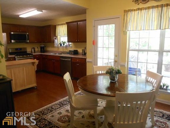 Charming 2-Story Home with White Daisies Lining Rocking Chair Front Porch on a Quiet Cul De Sac. Kitchen with Stainless Steel Appliances and Breakfast Room That Opens To Wood Deck and is Open to Living Room with Wood Burning Fireplace, Master on Main with Double Vanities, and Jetted Tub,His &n Her Walk In Closets. 3 Large Bedrooms Upstairs,Laundry Closet Upstairs, Finished Basement with Kitchenette and Large Family Room with Space for Exercise Equipment. Outside Entrance to Basement. Pull Down Attic Stairs for Extra Storage. Storage Bldg in Back for Lawnmower and Tools, Perfectly Maintained, GAMLS Lockbox, Home is Occupied and Seller has small dog.