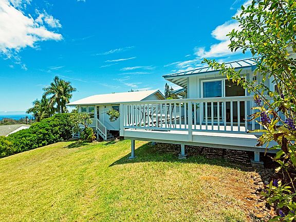 This recrafted Makawao Plantation-Style house and cottage is just up the hill from quaint Makawao Town and captures exceptional North Shore Ocean views. In the main home, upgrades include a new standing seam metal roof, new exterior siding with double wall construction and insulation, Pella windows, entirely new kitchen and bathroom, luxury vinyl plank flooring throughout, and fresh paint inside and out. In the cottage, new Pella windows, luxury vinyl plank flooring, and fresh paint completes the upgrades. The terraced yard is ready for a veggie garden and flower beds. Convenient location near both private and public schools make this a darling space for all.