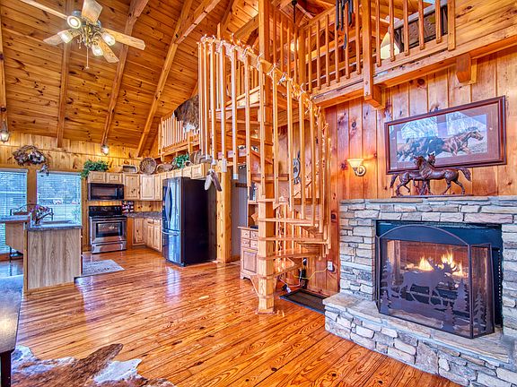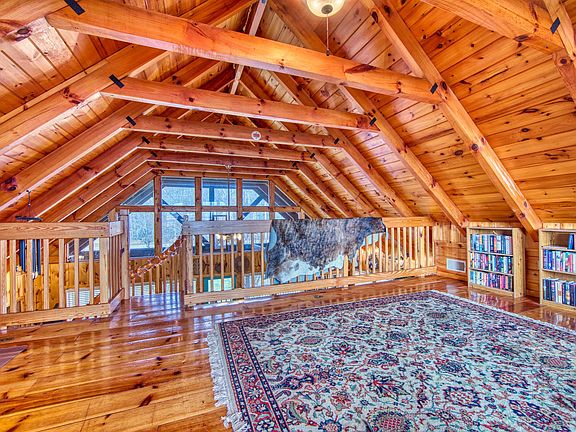 Log Home-Equestrian retreat. MASSIVE floor to ceiling windows in various sizes and shapes, an all wood spiral staircase leading to the expansive loft area with its own upstairs balcony. It's also has an additional wood burning stove you can cook on. Decking on both the front and rear of the home. A 30x100 foot 4 stall barn with separate huge TAC room & separate workshop. Also a 14x32 Separate ARTIST WORKSHOP.