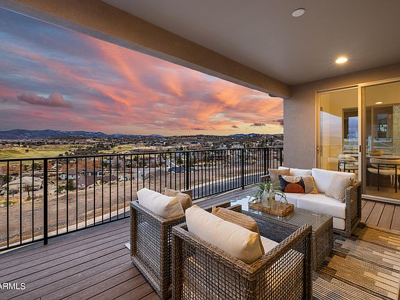Beautifully presented & MOVE-IN READY, this immaculate dream home resides in Solstice Ridge II at Prescott Lakes. Revel in breathtaking vistas of the golf course & surrounding mountains within this gated community. Indulge in the perks of private golf, pickleball, indoor-outdoor pools, a fitness center, & a restaurant with bar. This luxurious residence boasts 3 bed with a den/office, 2.5 baths & 3-car garage. The open floor plan highlights an inviting gourmet kitchen with top-of-the-line Bosch appliances and a large luxury island w/porcelain countertop. Features include a gas fireplace, primary suite with two walk-in closets & quartz countertop vanities. Step onto the private deck with unobstructed mountain views. This contemporary design home w/stone accents redefines luxury living.