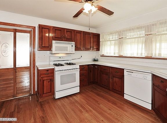 Charming home with hardwood floors throughout main level! Spacious living room with wood-burning fireplace! Kitchen with cherry cabinets, newer appliances & ample countertop space! Ceiling fans in bedrooms! Cedar closet! Bathroom with newer vanity and ceramic tile floor & tub surround! Full basement with large family room, storage area & workshop! Detached 2-car garage & fenced yard! Estate sale being sold "as is".