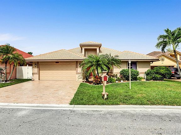 Listed but will not Last - I introduce you to this beautiful 3 Beds ; 2 Bath with solar heated pool home on the beautiful lake. This home features a living room, dining room, eat-in kitchen and relaxing screened in patio yard. The kitchen was renovated a few years ago with real wood cabinet doors and a customized sink. Large 2 car garage for storage or multiple vehicles. Split floor plan. 11x Ceiling fans. The Master bedroom features a huge walk-in closet. Standing Shower plus tub in the master bathroom. The barrel tile roof is 12 Years old. Receive 100% storm shutter insurance discount with the accordion to shutters all throughout. Walking distance to schools. Minutes away from Publix, Florida Turnpike, and Flamingo. So many features...Move-in today!