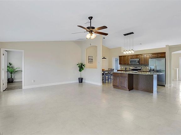Spacious 4 bedroom 2 bath house conveniently located. Formal dining room could also be used as a den. Updated and upgraded bathrooms and kitchen. All new plumbing fixtures. Kitchen includes upgraded cabinets with granite counter tops, stainless steel appliances, and island with room for bar stools. Large patio and backyard with plenty of room for pool. Huge Master bedroom with walk-in closet and large master bath. Open concept with split bedroom floor plan. Quiet street with quick access to Pine Island Road. Short trip to restaurants and shopping. Oversize garage with epoxy floor. Incredible value for all this space! All assessment will be paid at closing.