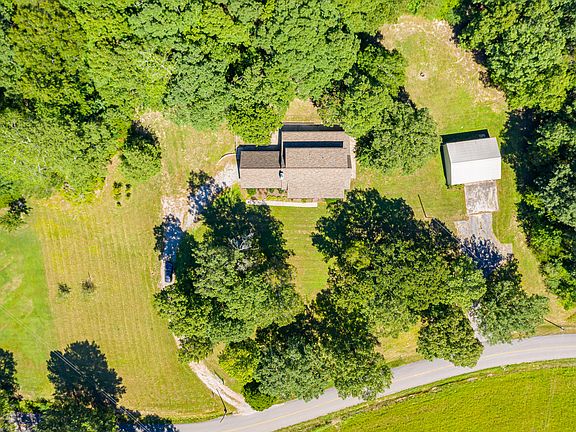 Only space has more space - and - more room to roam! Tired of being nose to nose and toes to toes with your neighbors? Check out this wooded, private 4 acre slice of heaven! Rocking chair front porch greets you as you enter the vaulted ceiling great room - love those hardwood floors! Brick surrounds the wood burning fireplace here. Cook's kitchen is open to sunroom - so much storage here! When I say sunroom I mean sunroom - it stretches the full length of the house! Tile floors in kitchen and sunroom make clean up a breeze and the wood beam ceiling is a great decorating contrast. Master suite on main level boasts built in storage and two more bedrooms located upstairs can handle your largest of furniture. Have stuff? No problem - this awesome home comes with an attached 2 car garage AND a separate 30x36 outbuilding with an additional 2 car garage door - it's workshop heaven! Private, fenced backyard completes the picture. Sound great? You bet it is!!