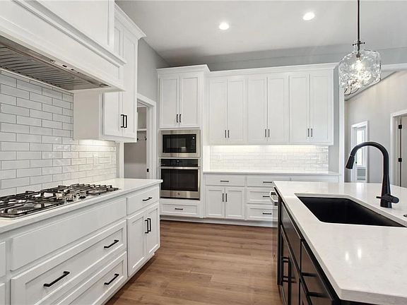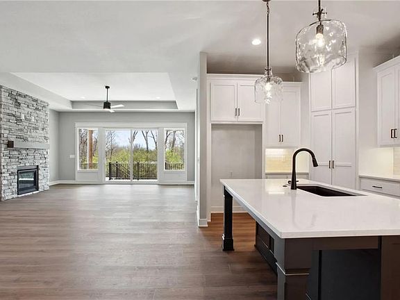 Introducing the Sonoma reverse ranch, by the award-winning builder Inspired Homes. The main level offers TWO primary suites with their own private and luxurious full baths, loaded with upscale designer options, including: custom built-ins, tile floors, lighting, trim details, and more! Also on the main floor is an additional powder room for guests and a laundry room attached to a primary closet for convenience. The modern kitchen comes fully stocked with quartz countertops, GE Profile built-in appliances, a gas range & built-in hood, an enlarged island, and high end, custom-made cabinets for ample storage. Not to mention the great room that has 10' ceilings, a floor to ceiling stone fireplace, and spacious room for any sized dining table! Then, head downstairs to the finished basement that boasts of 9' ceilings, an enlarged recreational space, two additional large bedrooms, and another full bath. AND it's a daylight basement, with plenty of custom designed windows for maximum light! Finally, walk outside to your private backyard with a large, covered deck with stairs and a ceiling fan, and enjoy the natural tree line and private farmland behind you. Kensington Farms is a highly sought-after community that promises luxury, convenience, security, and opportunity to its residents. Conveniently located in south Lee's Summit but also CASS COUNTY, you can take advantage of the multiple major highways in the area that can take you anywhere in the metro in just minutes. Or simply hang out in the community and enjoy laying by the large community pool, spending quality time with your kids on the playground, or making it a day of adventure by exploring our local walking trails. This home is MOVE-IN READY!