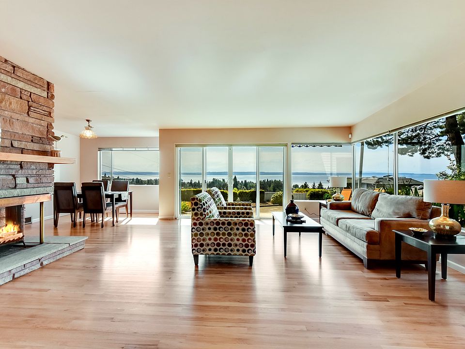 OUTSTANDING SOUND VIEW RAMBLER!! West facing home with 180* sweeping and protected views of Puget Sound & Olympic Mountains. Perched on the top of the Edmonds Bowl this mid-century ranch is a true condominium alternative and a "MUST SEE" if you are considering downsizing. 1675 S/f includes 3 bdrms & 2bths. Cute vintage kit/breakfast nook & Liv Rm w/stone FP. Hrdwd Flrs thruout. 2 car carport. Take in the colorful sunsets & watch passing ships from the private patio. One of Edmonds BEST views!