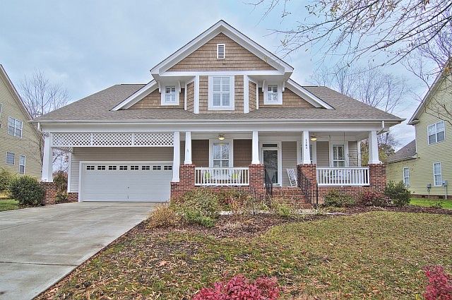 Craftsman style home w rocking chair front porch in desirable Tega Cay. Many upgrades include: 36" counters in baths, downstairs lighting, surround sound in GR, DR, & Bonus. Laundry room w sink & cabinetry. Kitchen w granite counters & new microwave in 2015. Vaulted ceiling great room w granite surround fireplace. Large master on main w double vanities, separate shower/tub in bath. Spacious secondary bedrooms on upper level. Oversized composite deck. Large, private, level backyard w irrigation.