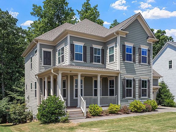 Introducing a stunning 5-bedroom, 4-bathroom home that embodies the perfect blend of modern elegance & comfortable living! The heart of this home is the gourmet kitchen. Adorned w/ sleek quartz countertops & featuring a generously sized island - providing ample space for meal preparation & entertaining. Adjacent to the kitchen is a sophisticated formal dining room. Convenience & versatility are key features of this property, as it presents a 1st floor guest suite, offering privacy & comfort for guests. As you ascend to the upper level, you will discover the expansive owner's suite, a true sanctuary for relaxation. Complete w/ a spa-like bathroom & two walk-in closets. Adding to the appeal of this home is a loft area, which can be utilized as a home office, study, or recreational space. Moreover, you will find a screened-in back porch that overlooks the serene wooded backyard, providing a picturesque spot to unwind and enjoy nature's beauty. The wooded backyard creates a tranquil oasis, inviting you to embrace the serene surroundings & enjoy the sounds of nature! Bikeable to White Street and Downtown Wake Forest!