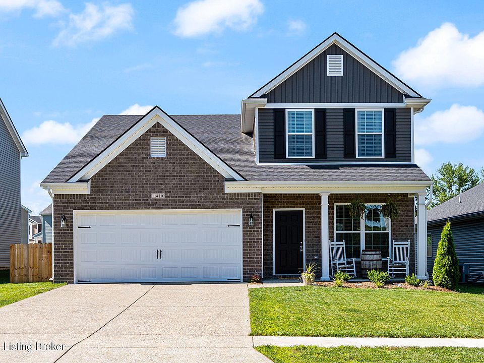 Welcome to 11410 Caswell Springs Way, nestled in the desirable neighborhood of Caswell Springs in Louisville, KY. This stunning, almost new home offers modern living at its finest with 4 spacious bedrooms and 2.5 bathrooms. With an open concept kitchen and living room it has the perfect setting for entertaining and everyday family life. The contemporary kitchen boasts stainless steel appliances, ample counter space, and a seamless flow into the living and dining areas. The first-floor master suite provides a private retreat with a beautiful en suite bathroom, ensuring comfort and convenience. Upstairs, three generously sized bedrooms share a well-appointed full bathroom, ideal for family or guests. Step outside to enjoy the fully privacy fenced backyard, a safe and secluded space for relaxation and entertaining. The home also features a covered front porch and a covered back patio, perfect for enjoying the outdoors in any weather. Additional amenities include a 2-car attached garage, providing secure parking and extra storage. Located in the charming Caswell Springs neighborhood, you'll appreciate the peaceful community atmosphere while being conveniently close to local amenities, shopping, and dining. This home, just two years old, blends contemporary style with functional living spaces, making it the perfect place to call home. Don?t miss the opportunity to make 11410 Caswell Springs Way your new address!