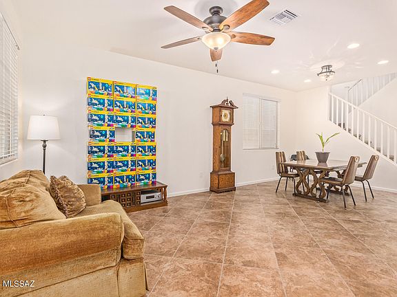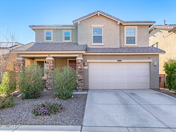 Turnkey home in perfect location! Walking distance to Vail's esteemed schools and a short drive to any amenity or I-10. Owned solar, two large living areas, vast storage and obvious pride of ownership throughout. Chef's kitchen replete with granite, two pantries and tons of prep space that's open concept to dining and living areas. Sizeable bedrooms and generous closets give everyone their own space, and storage. The primary suite is both expansive and inviting with light filled windows and a closet larger than some apartments! The spa-like ensuite features dual vanities and a huge rain head equipped shower. Gorgeous views out the back yard, a pocket park across the street and no neighbors behind make the outdoor spaces inviting. You could say EVERYTHING in this house IS AWESOME!