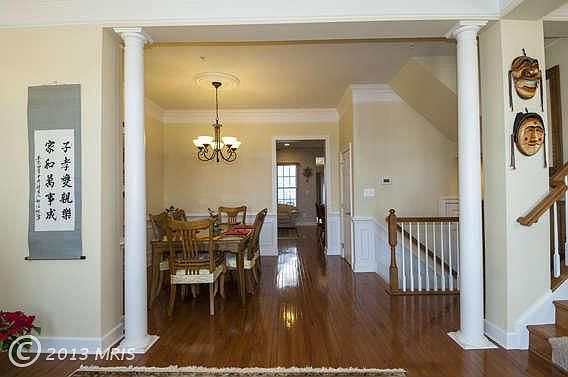 This 4 level Mitchell & Best townhome overlooks the Maple Lawn pool! Gleaming hardwood floors, custom kitchen w/ adjoining family room & breakfast area, dining room & living room - all on the main level. Upper level owner's suite w/ soaking tub in the gorgeous full bath, 3 additional bedrooms, 2 full baths & loft area. Bonus room accessible via private staircase. Lower level media room & RR.