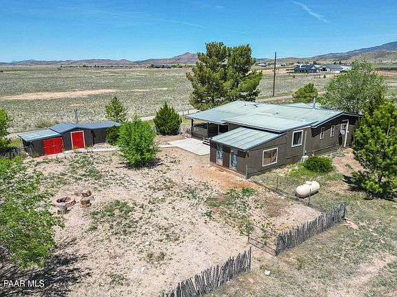 Wide open spaces! Are you looking for room for all of your animals, toys and family, beautiful views and in close proximity to dining, shopping, entertainment, hospitals and schools? Come see this 9.49 acre property with perimeter fencing, cross fenced and solar powered gate, 3 bedroom, 2 bathroom split bedroom plan home in Coyote Springs. Wood burning stove, vinyl flooring throughout and open concept living room, kitchen and dining room. 2 car carport, lots of outdoor living with the covered decks, shed. No HOA. Enjoy the panoramic views of all the mountains and the Arizona sunsets.