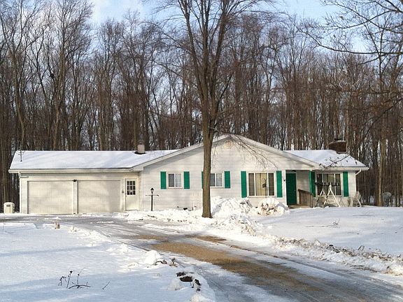 Ranch style, attached two car garage, additional garage 24 by 24 feet. Two driveway access, trail paths in woods, new furnace, a/c, and upgrades. 49 Acres.
