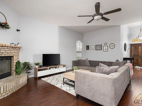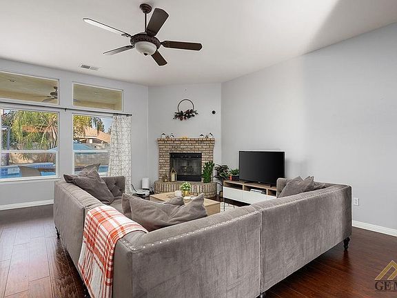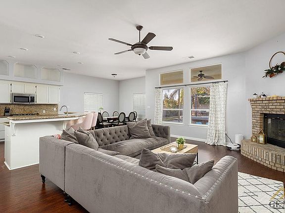 Enter through the double-doors to find high ceilings, neutral paint, wood flooring and brick gas fireplace. Conveniently located off the entrance is a large room, great for a home office, gym, or guest bedroom. Featuring an open floor plan with living room, dining area, kitchen, and views of the backyard making it great for hosting. Hone your cooking skills in the well-appointed family style kitchen boasting granite countertops, white cabinetry, built-in appliances, gas stove, and barstool seating. Down the hall are 4 additional bedrooms, plus a bonus room and laundry area. Enjoy and entertain in the expansive backyard complete with a sparkling pool, grassy area, and covered patio. Near shopping, dining, entertainment, and more.