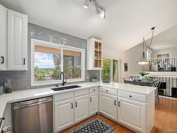 Best Value out there! Tucked into a quiet cul-de-sac in Overlook Estates, this beautifully maintained multi-level home offers space, comfort, and style in all the right places. You will love the mid century modern feel with all the current bells and whistles. The main floor features a welcoming living room, formal dining room, and a bright kitchen with creamy white cabinets, stainless steel appliances including a gas range and gorgeous quartz countertops. Enjoy the sweeping mountain views from the kitchen window as well as the breakfast nook. Entertaining is a breeze on the spacious deck that takes in the unobstructed views and overlooks the expansive backyard with mature trees. A few steps down is a spacious family room perfect with whitewashed stone fireplace and a retro mini-bar. Family game nights or sitting in front of the fire with that special someone makes this room a favorite place to gather with those you love. Also located on this level are the laundry facilities as well as a bathroom. The upper level is very open and has an abundance of living space beginning with the loft that could easily become a 4th upstairs bedroom. Also on this level is the generous primary bedroom which includes a 3/4 en-suite bath, plus two additional bedrooms and full bath. The basement adds even more possibilities with a bonus room, a non-conforming bedroom and a 3/4 bath. The attached 3 car garage includes a bay perfectly sized for an RV. Brand New Swamp Cooler keeps things super comfortable. Great Central Arvada location makes getting to the foothills, Downtown Denver or Boulder about 25 minutes from each direction. Enjoy the quiet cul-de-sac location on this tree-lined street of custom homes. Located near Olde Town Arvada, this home offers shopping, dining, and easy access to I-70, blending lifestyle, location, and functionality. Welcome HOME!