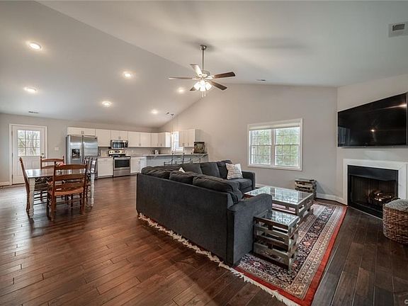 Enjoy the maintenance free upgrades of new construction without the premium cost. Spacious rancher located in sought after Rockville in beautiful Hanover County. Drink your morning coffee on your country front porch that looks over the landscaped yard. Walk into an open floor plan with vaulted ceilings throughout your living area and eat in kitchen with separate laundry room. You'll love the stainless steel appliances, granite countertops, luxury engineered flooring running throughout, and a cozy gas fireplace in the living room. This tremendous rancher boasts spacious bedrooms, including a large master bedroom with master ensuite bathroom that features a granite double vanity and walk in closet. Enjoy summer nights on the back deck, or in your cleared backyard around the fire pit. Nothing has gone unnoticed, including high end full house water filtration system and a full privacy fence around the yard. Location is everything! Enjoy the country landscapes while being 4 miles from I-64.