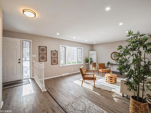 Discover this charming tri-level home set on just over an acre of peaceful, wooded land in Demotte, Indiana. Featuring 3 bedrooms, 2 beautifully remodeled bathrooms, and an updated kitchen, this home combines modern touches with natural tranquility. Lower level has a huge bonus room featuring a fireplace perfect for cozying up to.Outside, enjoy the serene setting and the convenience of a large pole barn, perfect for storage or hobbies. Property is centrally located to schools and provides easy access to I-65.This property offers a great balance of comfort, space, and location. Schedule your showing today!