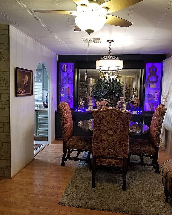 This is a beautifully remodeled mobile home with a solid roof built over origional mobile home roof. It has 2 bedrooms 2 full bathrooms, new paint inside last year. East facing Window screens to reduce heat. Home comes with stove, fridge, microwave, washer/dryer, couch and lovesest, all curtains and blinds if wanted. Central air/heat, and additional portable ac in master bedroom. Has a covered patio, and carport, storage shed, wheelchair accessible. 55 and older gated community is very clean, safe and enjoyable. Community pool and jacuzzi is heated for year around swimming, movie room, gym, commons room, library, billiards room and additional laundromat.