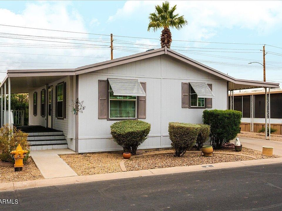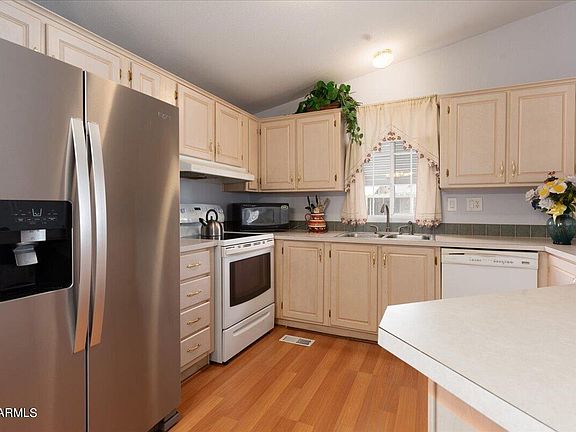 This charming manufactured mobile home is the perfect place to call home! In the 55+ community of Casa Del Sol West, a rare 3 bedroom & 2 bath is now available, with a spacious and comfortable living room. Updated flooring and The kitchen is complete with all the necessary appliances and storage including fresh cabinets. The home has a lovely front porch, perfect for sipping your morning coffee and enjoying the Arizona sunshine.Also, a storage shed for more space. This community offers plenty of parking, ensuring that you and your guests always have a place to park. This home is conveniently located near shopping, dining, and entertainment, so you are never far from the action.